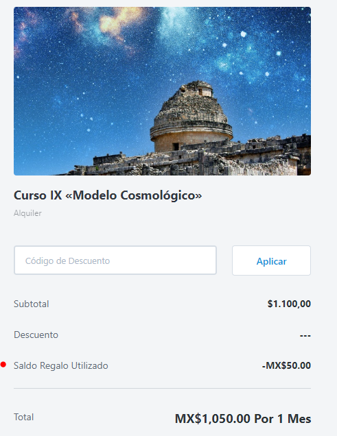 Listo, ahora dirígete al catálogo y cuando selecciones un curso para comprar, el saldo de la tarjeta de regalo que tienes abonado, se descontará automáticamente del costo del curso: